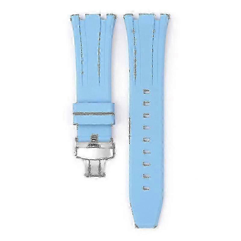 For Audemars Piguet Royal Oak 15500/15400 Silver Butterfly Clasp Strap 26MM FG05 For Audemars Piguet Royal Oak 15500/15400 Silver Butterfly Clasp Strap 26MM Features: 1. Viton material, which makes it able to withstand accidental drops, bumps and impacts, very easy to install. 2. Good wearing experience very soft and provides excellent fit 3. Easy to adjust to fit most people's wrists and can be adjusted to suit individual wrist size. 4. Suitable for AP Offshore Royal Oak 15500/15400/26331. Specification: Material: Viton Weight: approx. 30g Length: 125+75mm Thickness: approx. 3mm Size: 26mm Clasp: butterfly silver buckle Packaging Included: 1*Watch Strap Note: 1. Due to manual measurement, please allow 1-3mm error. Please make sure you don't mind before ordering. 2. Please allow 1-3 gram weight error. Please make sure you don't mind before ordering. 3. Due to different lighting in the photos and differences in monitors, the pictures may not reflect the actual colour of the object. Please make sure you don't mind before ordering, thank you!