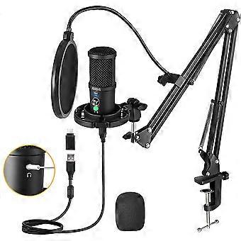 Aveek Condenser Microphone, PC Recording Microphone with Mute Button, Headphone Monitoring and Noise Cancelling, for PS4 Games, Streaming, Podcast, St