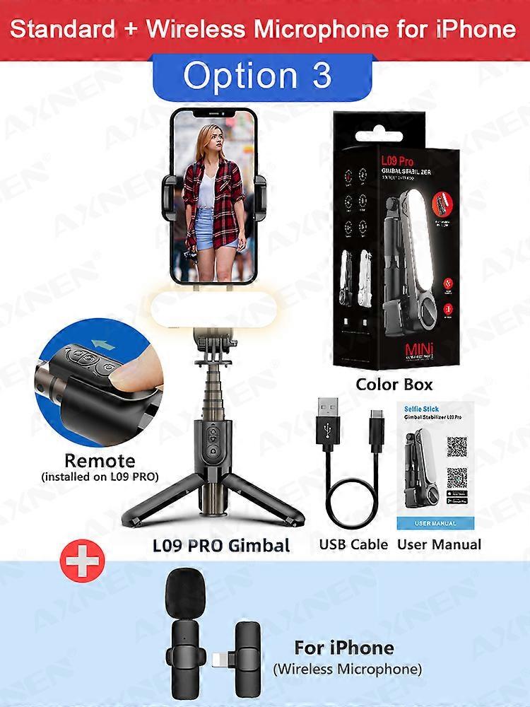 AXNEN L09 PRO Wireless Bluetooth Selfie Stick Tripod Handheld Gimbal Stabilizer Monopod with Fill Light Shutter for IOS Android