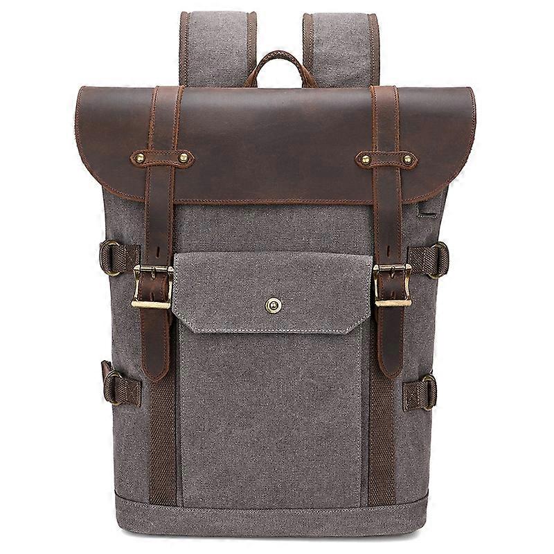 B1003 Men Retro Canvas+Leather Backpack Laptop Storage Bag Travel Daypack