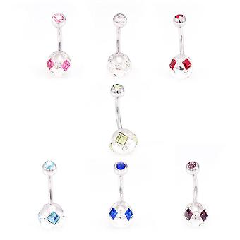 Belly button ring package of 7 navel ring with cubic zirconia 14g