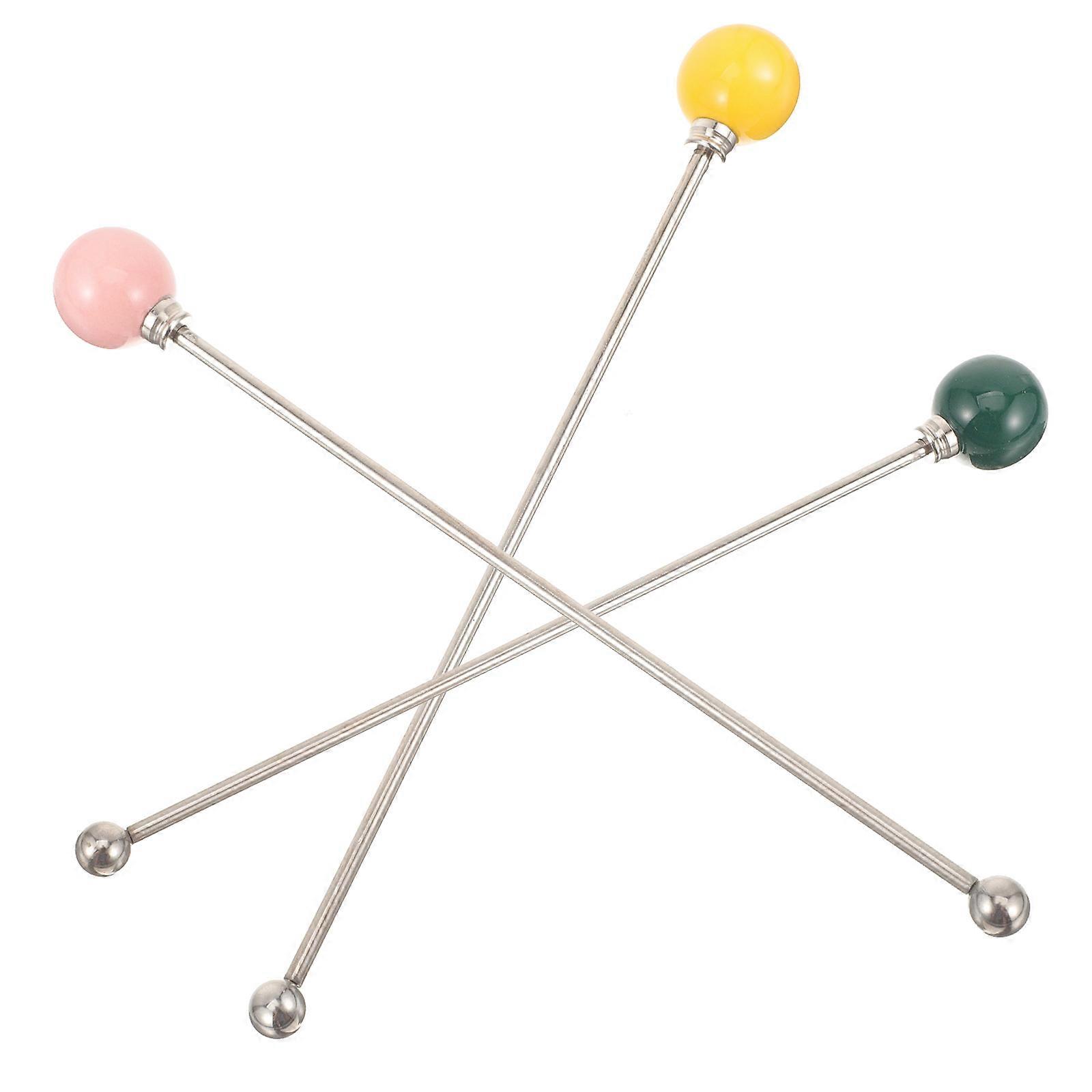 Beverage Stirring Reusable Metal Swizzle Sticks Assorted Color Essential Bar Tool 3Set