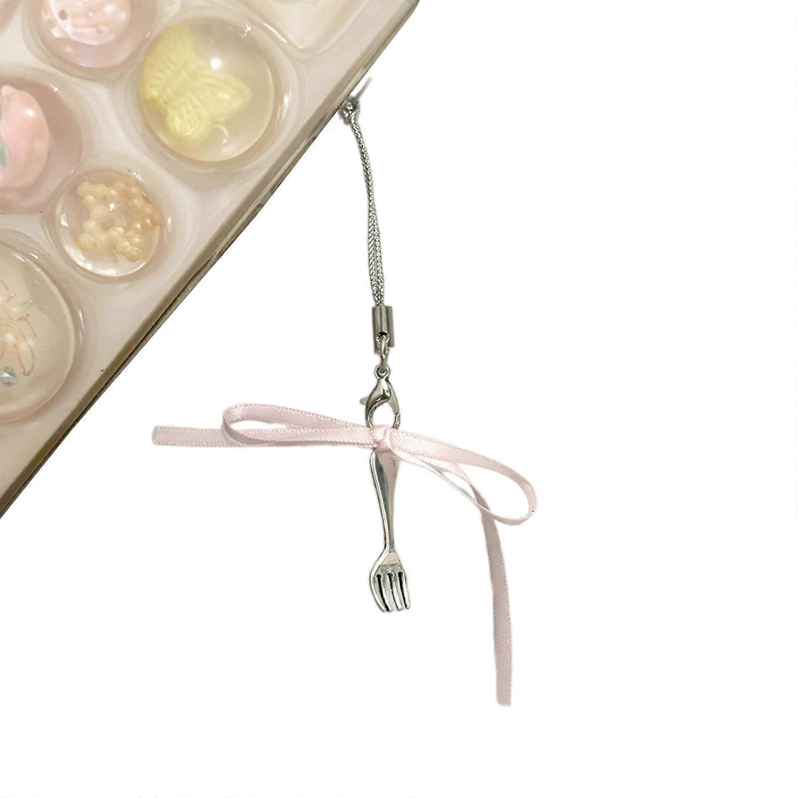 Bowknot Fork Pendant Cellphone Chain Women Mobile Phone Strap Anti-Lost Lanyard Hanging Cord Jewelry Fashion Keychain Pink