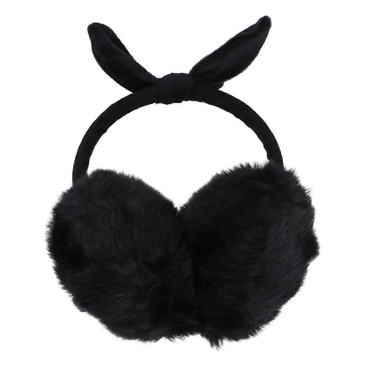 Bowknot Design Earmuffs Rabbit Ear Warmer Winter Ear Covers Headwear for Girls Women (Black)