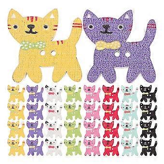 Retro Two Hole Decorative Buttons Assorted Color Flower Pattern Wood Gear For Sewing 100Pcs