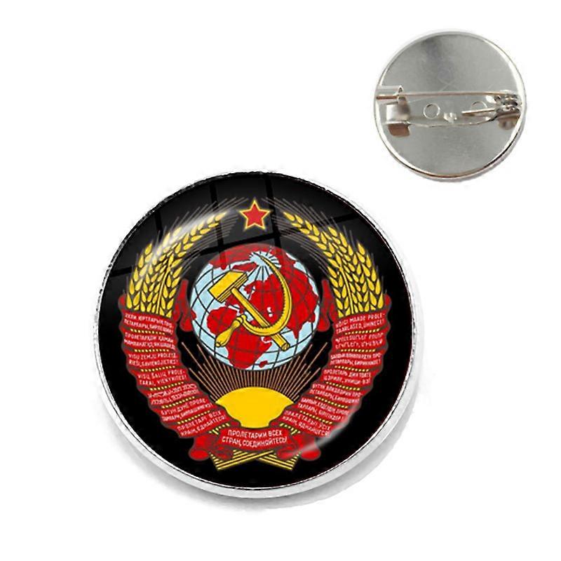 CCCP USSR Soviet Army Red Star Brooches Pin Glass Cabochon Art Round Russian Badges LOGO Collarpins Jewelry For Friends Gift