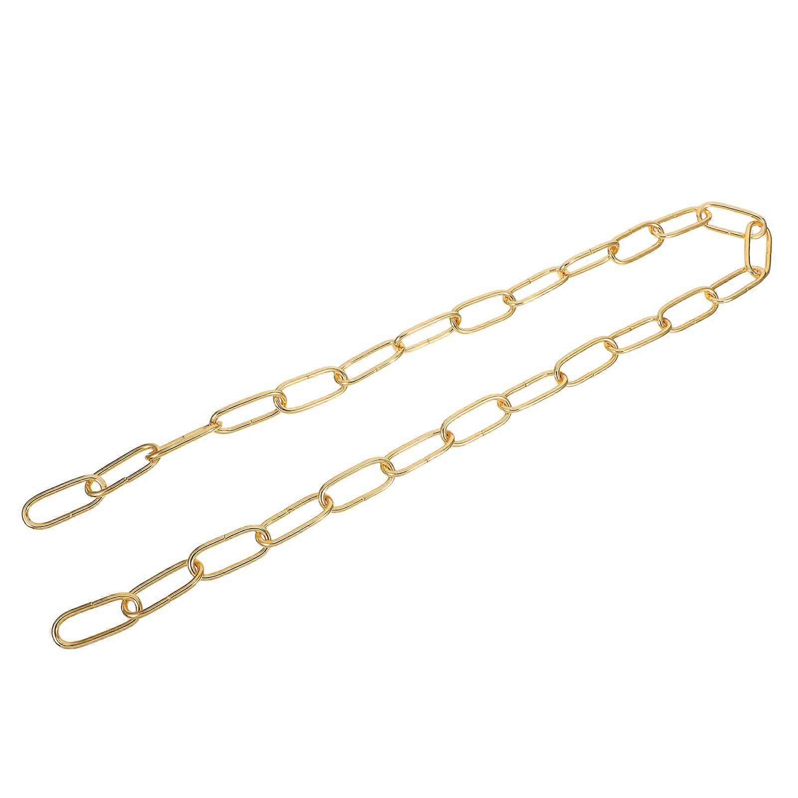 This is an general purpose chain, which is used in applications which do not require a high strength to weight ratio. It can be used for towing, hanging, stump pulling, , load securement, logging, lighting chain, etc. Features - Color: Golden. - Material: Iron. - Size: About 100x2x0.4cm/39.37x0.79x0.2 inch. - Made of material, durable and practical - With weight bearing up to 20 KG. - This chain is an excellent general-purpose chain of standard commercial quality - It is suitable for enclosing farm or commercial security gates, suspending or hanging items, and other general purpose applications - This chain is not recommended for use in overhead lifting or hoisting applications Package list: 1M Chain