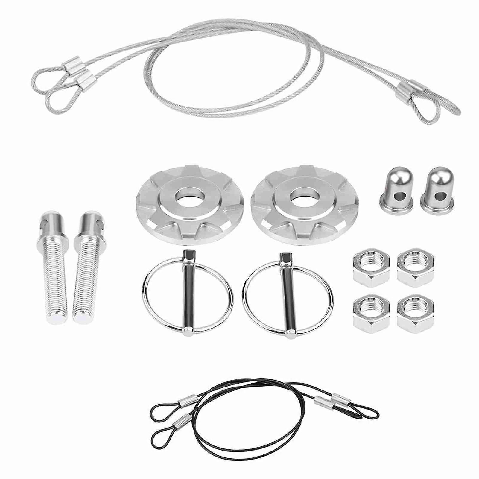 CNC Aluminum Alloy Car Hood Lock Appearance Kit Universal Silver