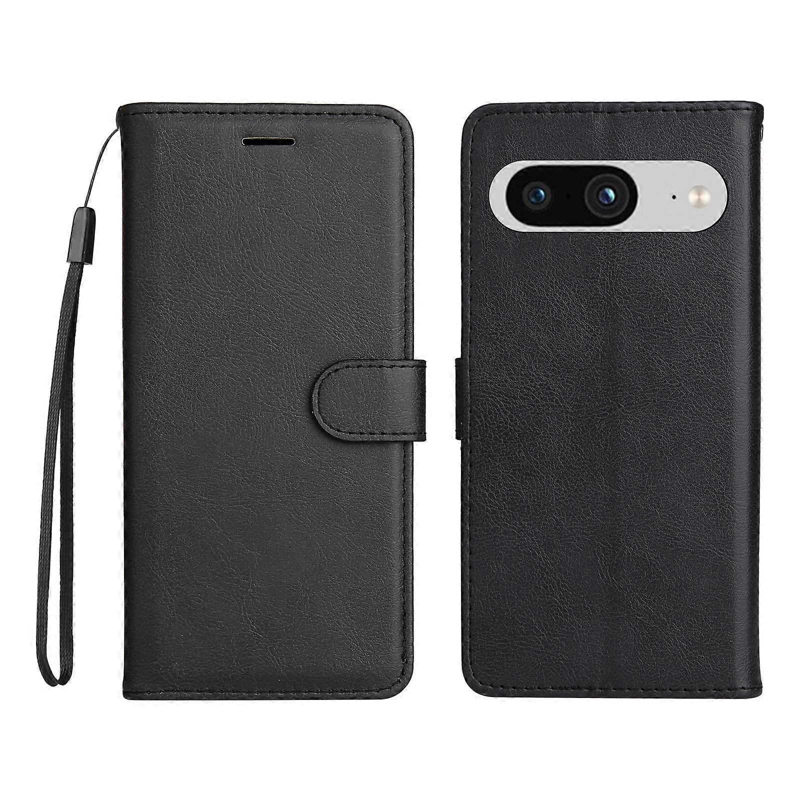 Compatible For Google Pixel 8 Leather Wallet Case with Strap Solid Color Phone Stand Cover