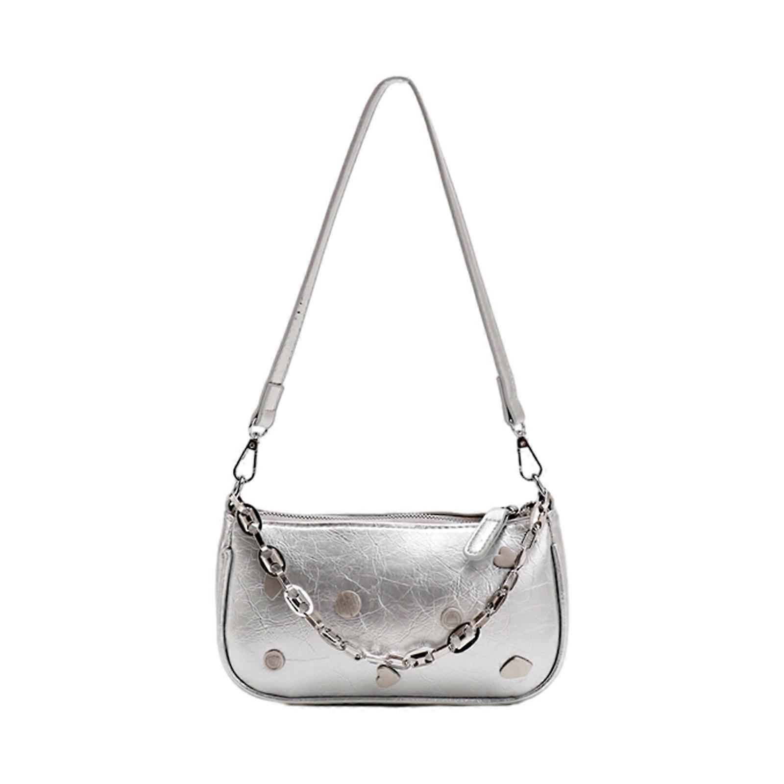Crossbody Tote Bags Single Shoulder Bag Simple Handbag Waterproof Leathers Handbags with Detachable Shoulder Strap Silver