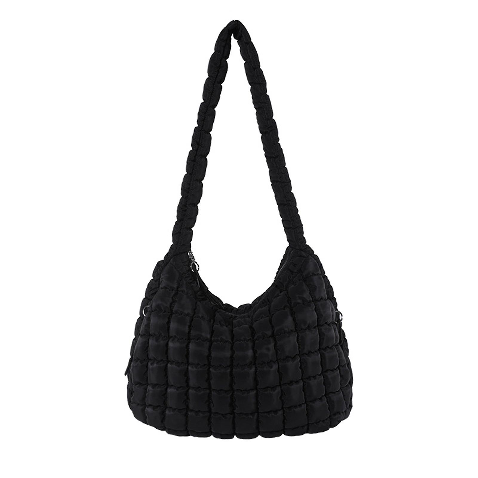 Women Shoulder Bag Large Capacity Zipper Closure Solid Color Padded Puffer Quilted Tote Bag Commute Shopping Travel Crossbody Bag Puff Sling Bag