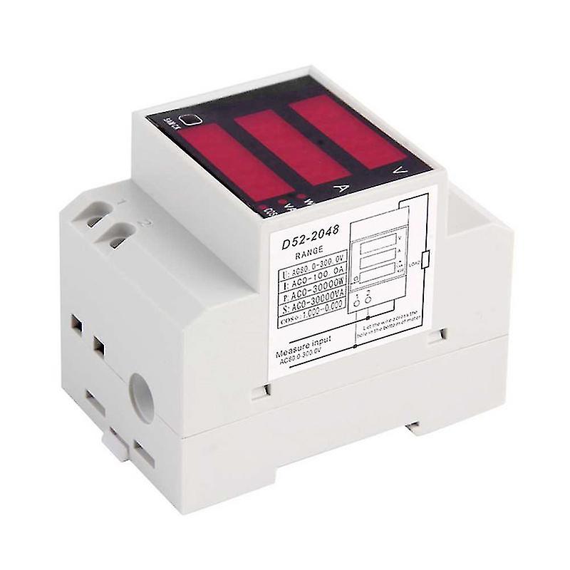 D52-2048 Din Rail Led Digital Voltmeter Ammeter Current Meter Active Power Factor Ac80-300v Multifunction Meter 100a