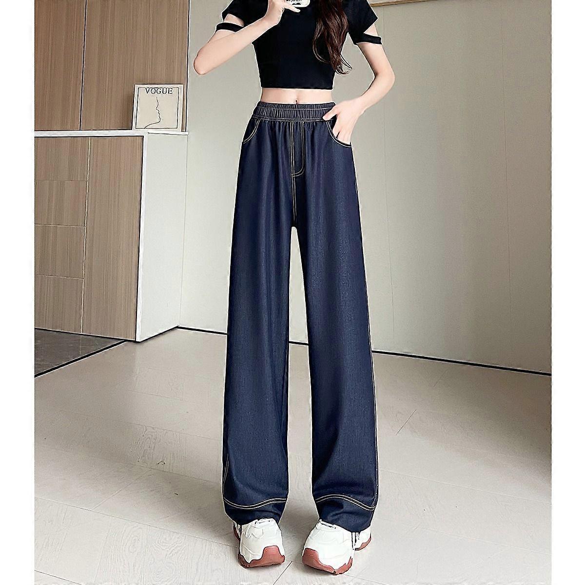 Denning Blue Wide Leg Jeans Women's Summer Fat Mm High Waist Loose Straight-Legging Leisure Pants