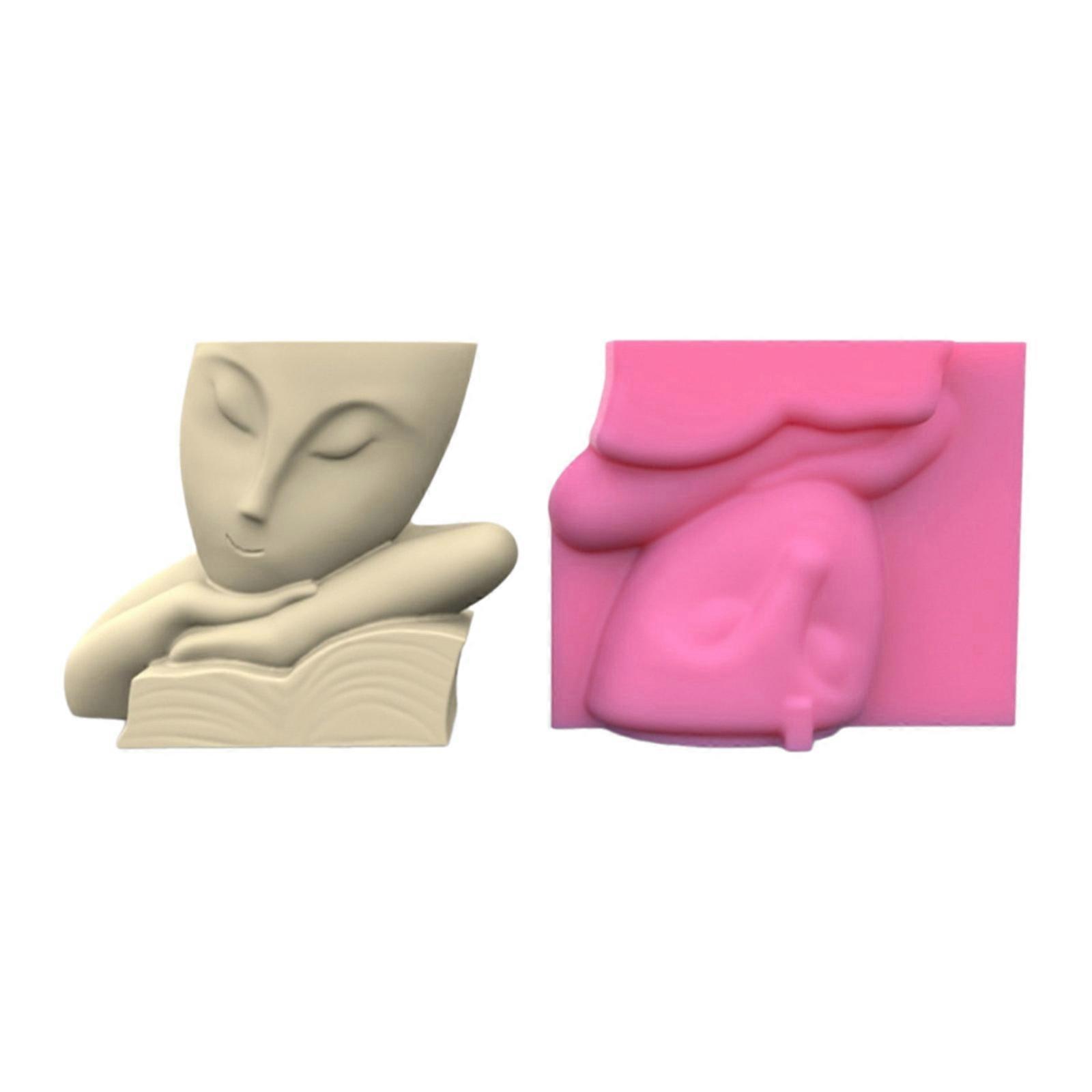 DIY Unique Face Girl Flower Pot Silicone Molds Pen Holder Concrete Mold Succulent Planter Making Tool for DIY Crafts