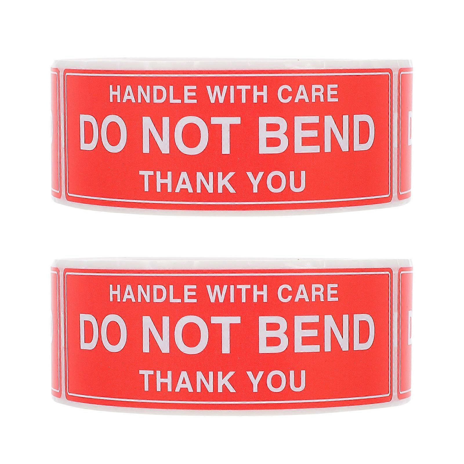 Do Not Bend Warning Stickers for Packing 2 Rolls Red Adhesive Labels