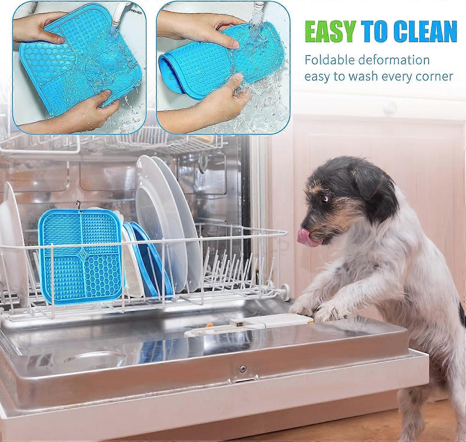 Dww-2pcs (Blue+Red) 20*20*0.5cm Lick Pads with Scraper, High quality lick pads with suction cups for anxiety relief, slow feeding dog bowls, bathing,