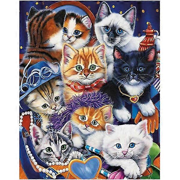 Dww-30x40 cm 5D DIY Full Diamond Painting, cute kitten diamond painting DIY diamond rhinestone canvas cross stitch
