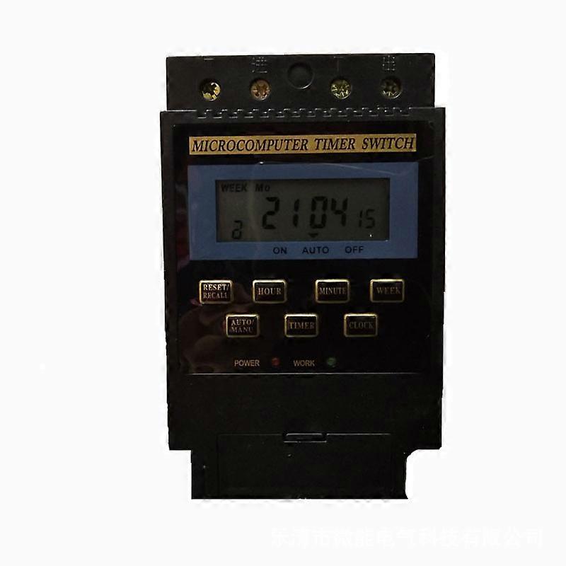 KG316T Microcomputer Timer Control SwitchPerformance indicators:Operating voltage: 220V / 50-60HzControl output: 25A (direct), can also be extended to control usageNumber of settings: 16 switches (day/week),Time set: 1 minute to 168 hoursTime error: 1s / 24h Fault memory: over 180 days (built-in 1.2V rechargeable battery)Wiring method: Luo nail deviceDimensions: 120x70x52mmDepending on the installation method: track type or compass nail device (M3 comic nail three)Product applications: water heaters, light boxes, broadcasting equipment and other electrical equipment, etc.