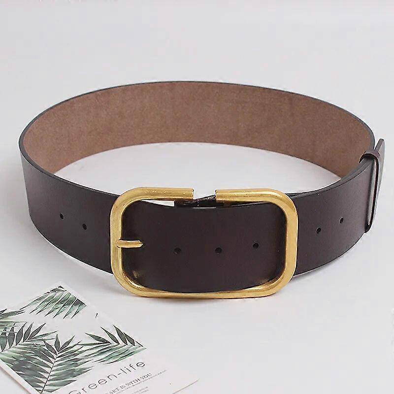 [EAM] Pu Leather Big Buckle Split Joint Long Wide Belt Personality Women New Fashion Tide All-match Spring Autumn 2023 1Z948