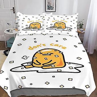 EKENOZ Gudetama סט מצעים כיסוי שמיכת תלת מימד לילדים בנים בנות אנימציה מצוירת כיסוי שמיכה כיסוי מיטה רך סט 3 חלקים עם סגירת רוכסן רך