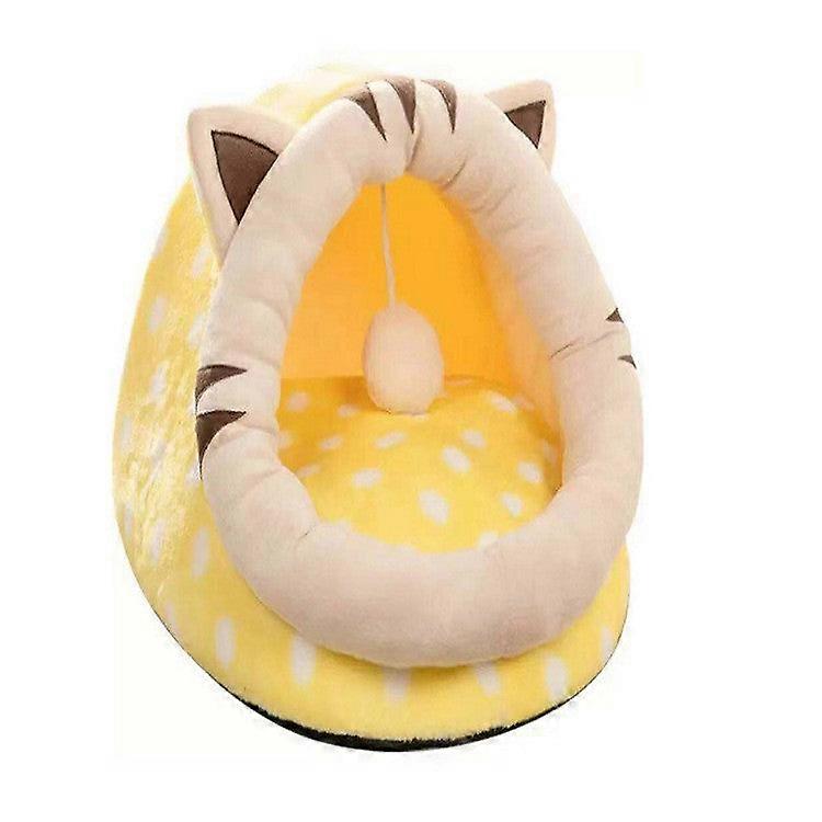Elosung Yellow Half Enclosed Cat Bed Soft Short Velvet Fabric With Sponge + Pp Cotton Filling M Size (35X35x30cm) Pet Beds