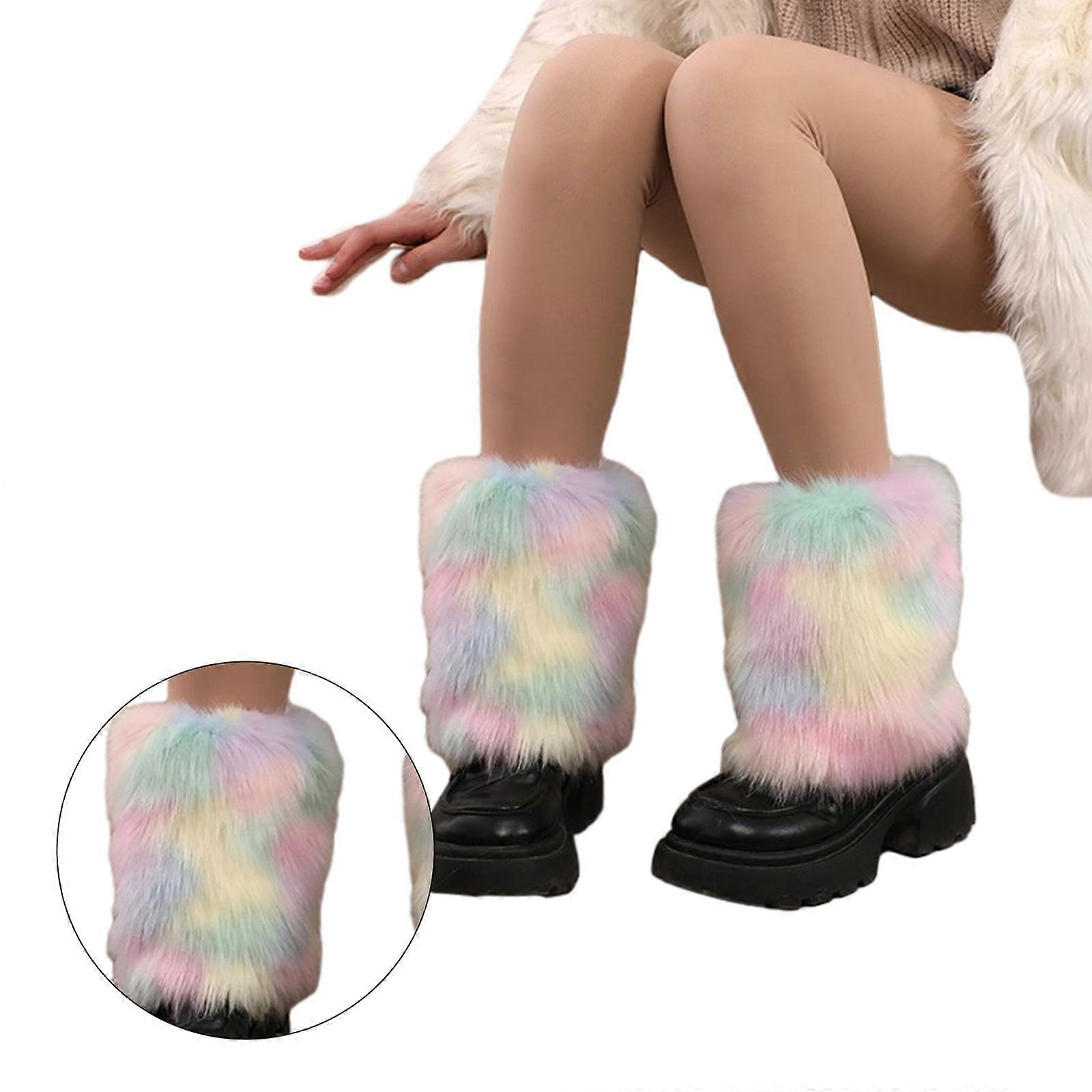 Fauxs Furs Leg Warmer,Warm Soft Fuzzy Leg Warmer Boot Cuffs Cover for Women Party Costumes Boot Sleeves Boot Cover Yellow pink and blu