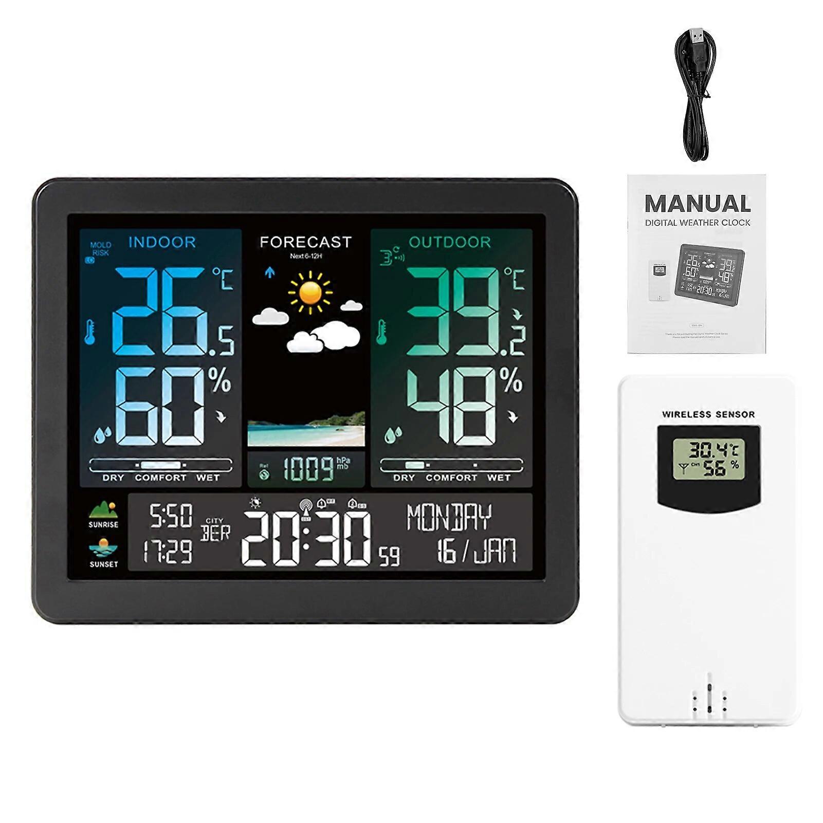 FJ3566B-N Electronic Weather Station Intelligent Clock Temperature Humidity Barometric Pressure Moon Phase Weather Forecast
