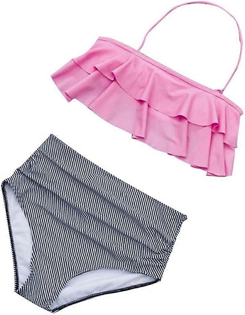 Flounce Bikini high Waist Backless Swimsuit Halter Bathing Suit, Pink, S