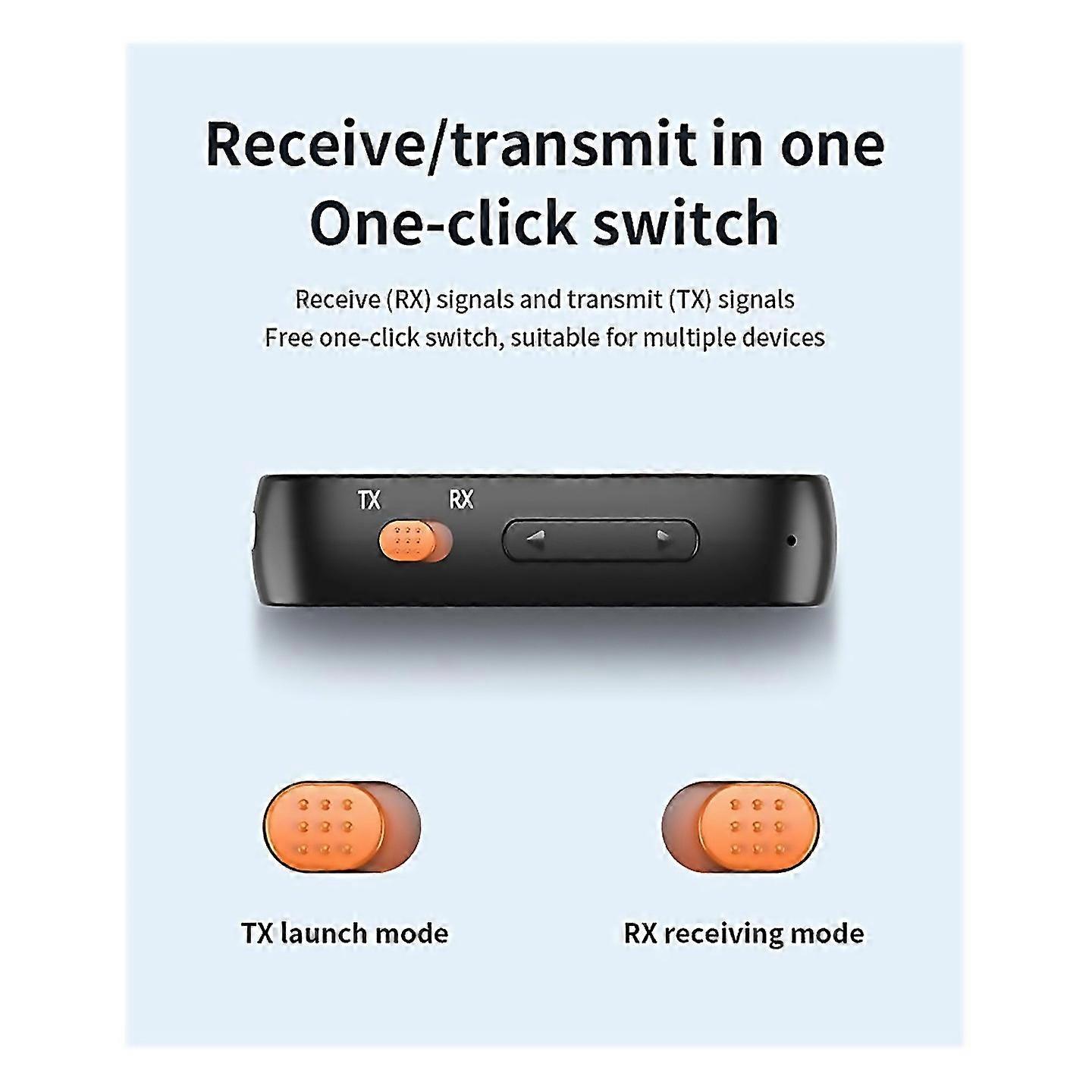 Fangrui Product Details Product Name: Bluetooth Audio Adapter Bluetooth Version: V5.3 Transmission Distance: Barrier-free 10m Function: Bluetooth Playback/receiving/transmitting/calling Battery Capacity: 200mah Working Time: Receiving About 15h/ Transmitting About 9h Charging Interface: Type-c Audio Frequency: 3.5mm (aux) Audio Plug Colour:black Material:plastic Package Contents: 1x Bluetooth Adapter 1x Charging Cable Only The Above Package Content, Other Products Are Not Included. Note: Light Reflection And Different Displays May Cause The Color Of The Item In The Picture A Little Different From The Real Thing. The Measurement Allowed Error Is +/- 1-3cm.