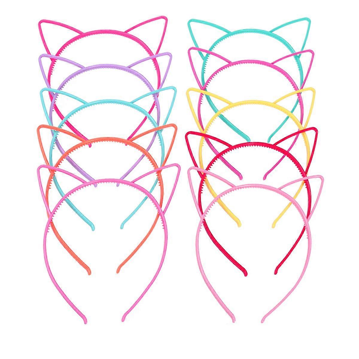 FRCOLOR 10pcs Cat Ear Headband Plastic Cat Hairband Cat Bow Hairbands Makeup Party Headwear for Women Girls