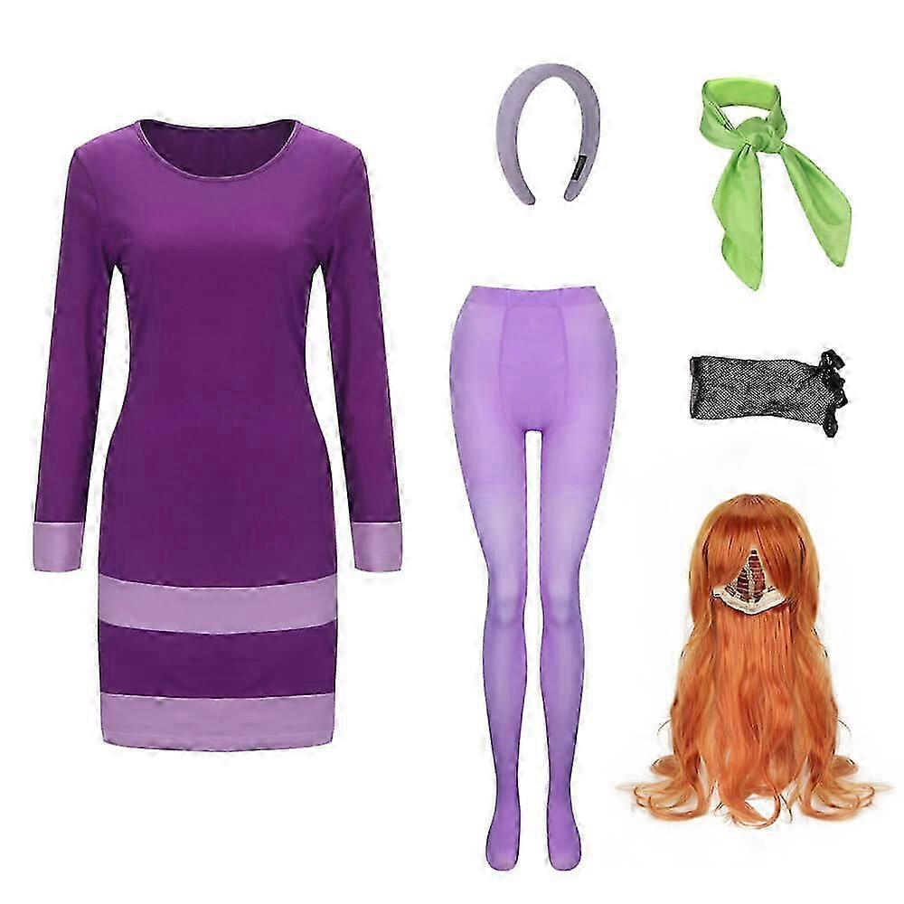 Fsw Daphne Blake Cosplay Women's Halloween Costume Wig 70s Retro Purple Fancy Dress Classic Cartoon Series Theme Party Takerlama 2025