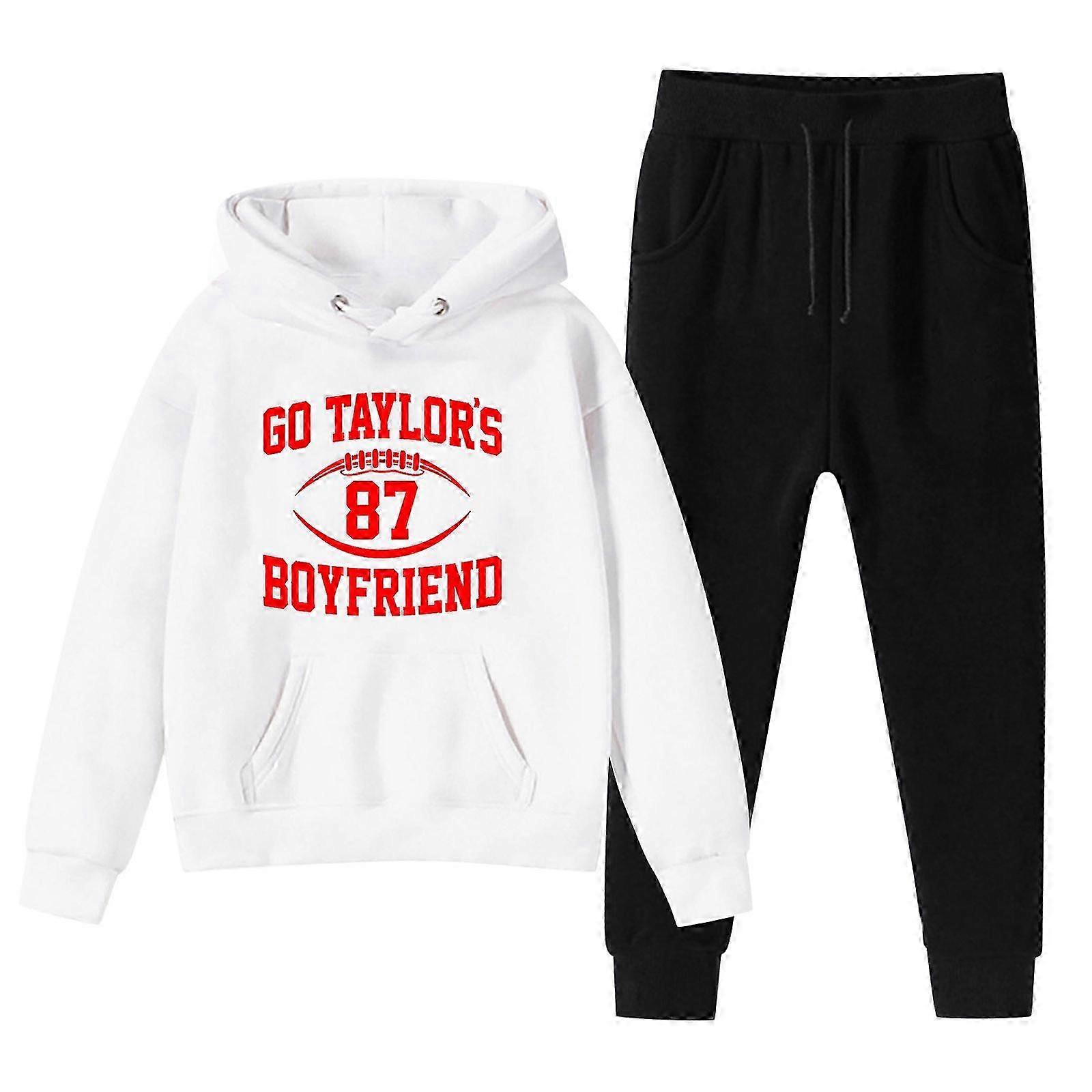 Go Taylor'S Boyfriend Fun Print Teen Hooded Sweatshirt Pants Two-Piece Set - White