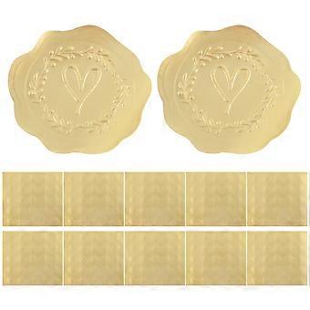 Golden Heart Envelope Sealing Stickers Embossed for Wedding Invitations 10 Sheets