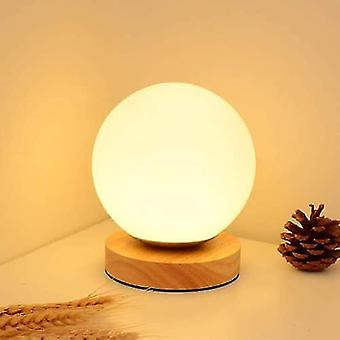 Goodzaz Wooden Table Lamp, E27 Decorative Table Lamp Bedside Lamp Night Lighting Light Glass Desk Lamp Round Shape, For Bedroom, Bedside Table, Baby R