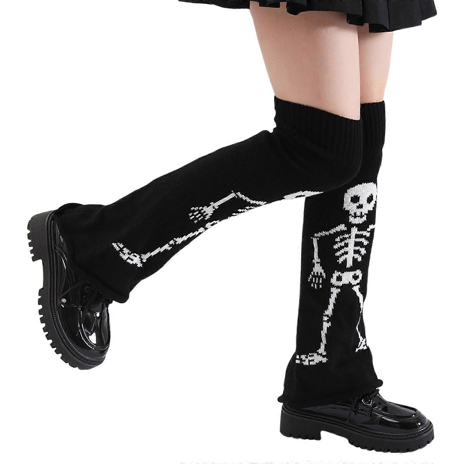 Harajuku Gothic Women Skull Skeleton Pattern Leg Warmer Socks Knitted Flared Foot Covers Thigh High Stockings Streetwear Multicolor