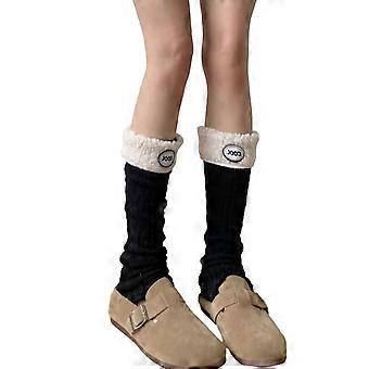 Harajuku Women Knitted Leg Warmer Long Socks Cute Furry Trim Letters Label Preppy Warm Foot Cover Boot Cuffs Stockings Black