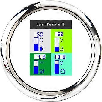 HD 4in1 85mm Digital Multi-function Gauge Fuel Level Gauge Water Temperature Oil Pressure Gauge Voltage for Boat Car Motorcycle