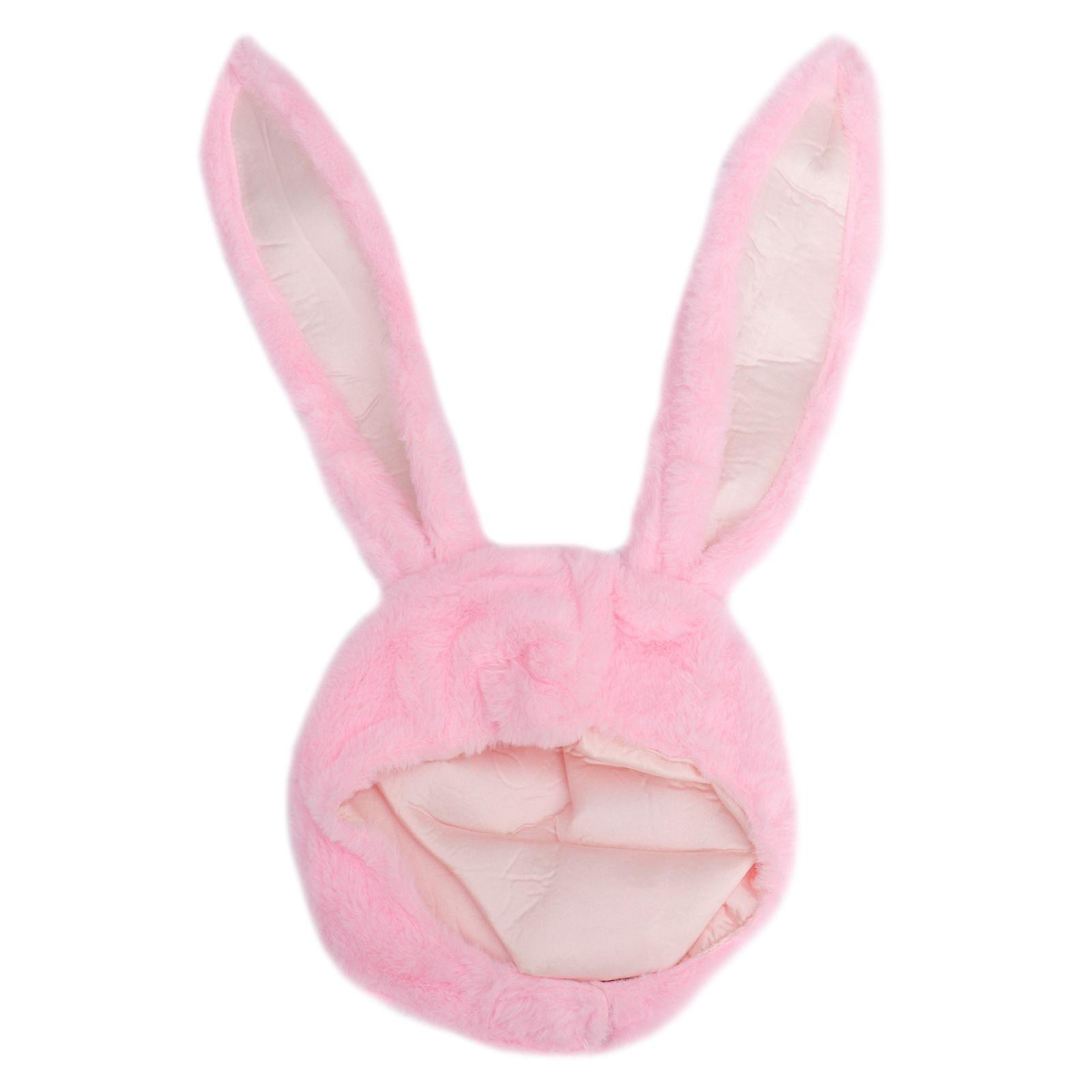 Rabbit Headwear Cartoon Animal Hat Movable Ear Plush Hat for Women Girls (Pink)