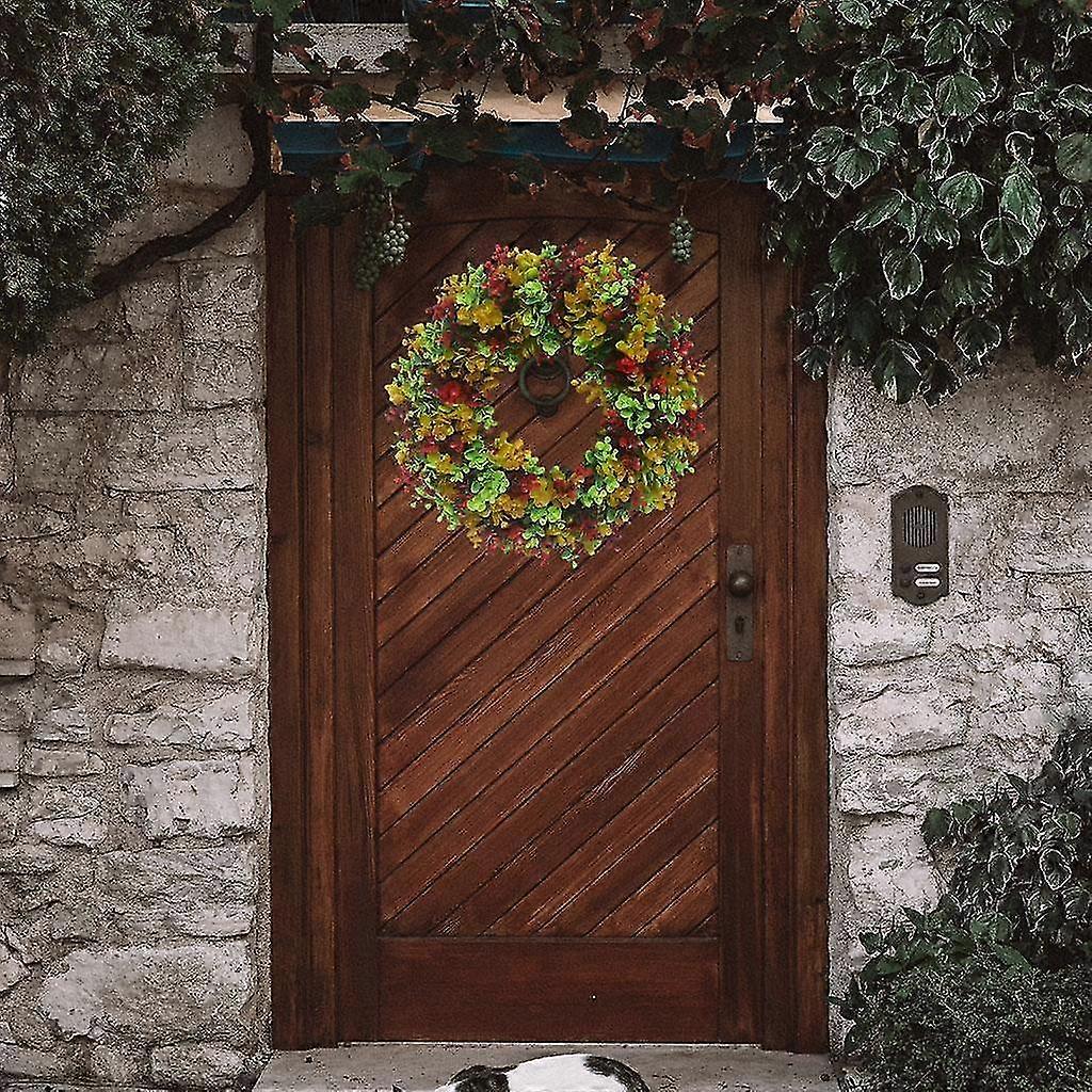hg Artificial Fall Floral Wreath With Pinecone Maple Leaf And Berry Halloween Garland For Farmhouse Festival Celebration - 45cm
