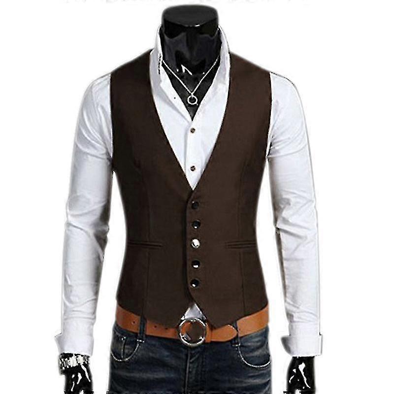 Hmwy-men Retro Formal Business Waistcoat Suit Vest Slim Fit Jacket Coat