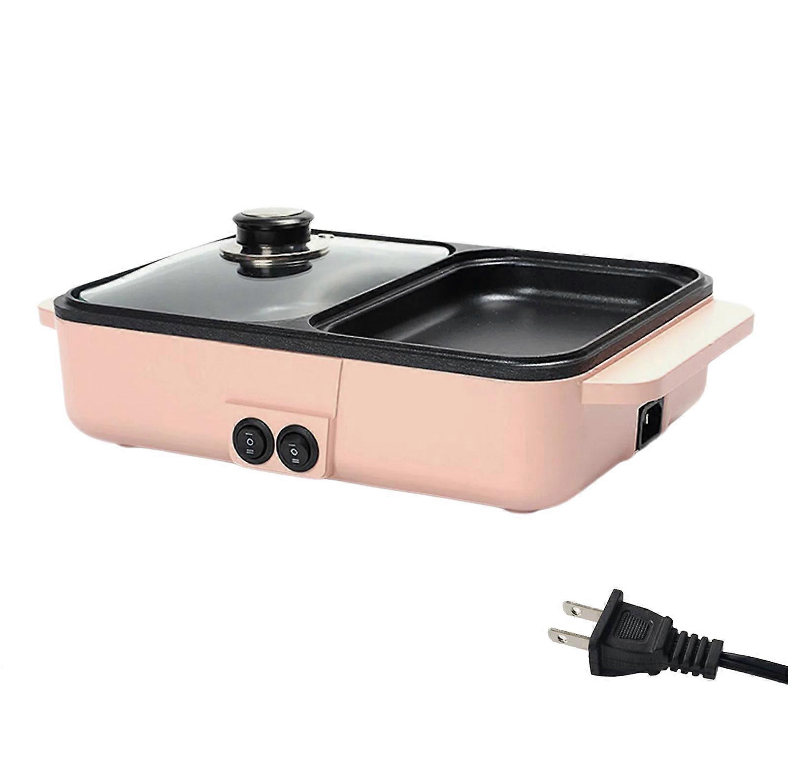 Hotpot Electric with Grill 2 in 1 Indoor Nonstick Electric Pots and Griddle for BBQ 2 Gear Temperature Control Heating Pink