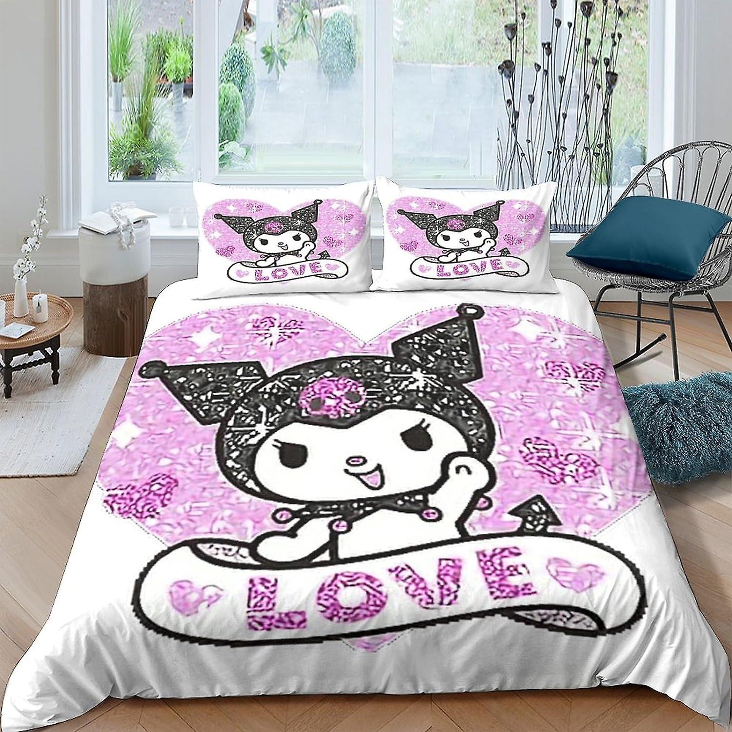 HOUKIG Kuromi 3D Printed Anime Characters Duvet Cover Comforter Covers Quilt Cover for Boys Girls with Zipper Closure Bedding Set Soft Microfiber with