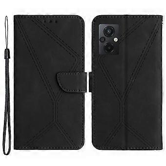 Ht05 For Xiaomi Poco M4 5g/m5 4g Imprinted Line Phone Case Wallet Stand Skin-touch Pu Leather Cover