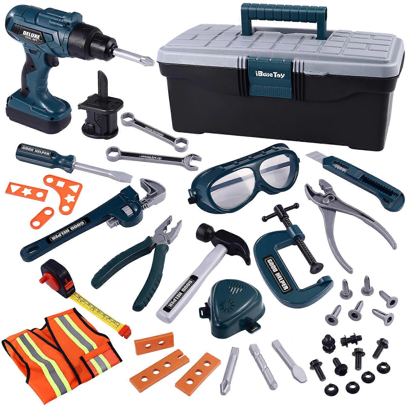 iBaseToy 45pcs Kids Tool Toys Children Role Play Pretend Play Toy Set Educational Learning Toy Kit Dark Green