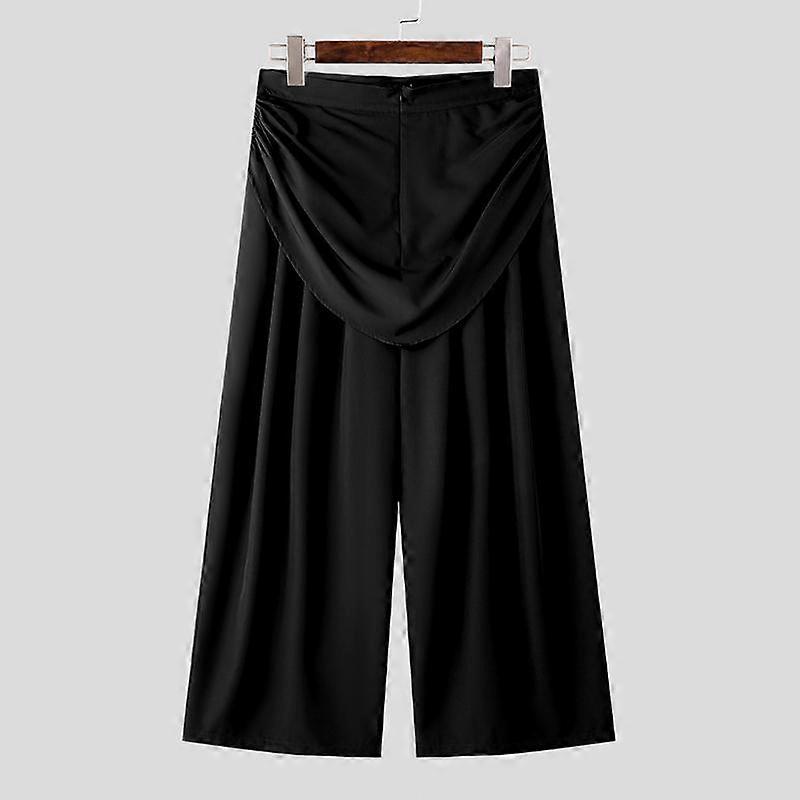 INCERUN Men Zipper Waist Ruffled Casual Loose Long Pants Trousers
