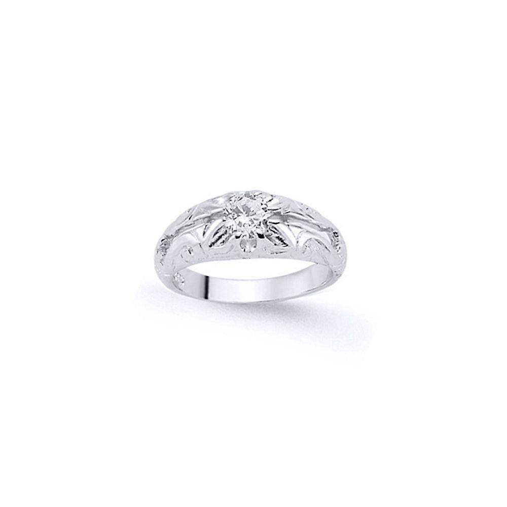Jewelco London Boys Sterling Silver Cubic Zirconia Gypsy Carved Solitaire Ring