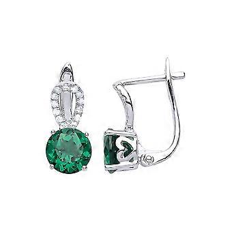 Jewelco London Ladies Sterling Silver Emerald-Green Cubic Zirconia Teardrop Halo Solitaire Drop Earrings