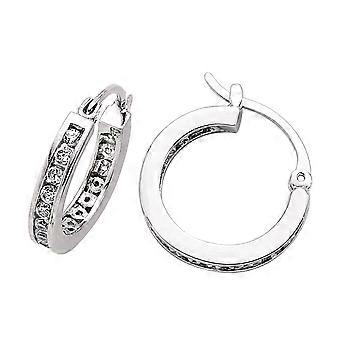 Jewelco London Ladies Sterling Silver Cubic Zirconia Huggie Hoop Earrings 17mm