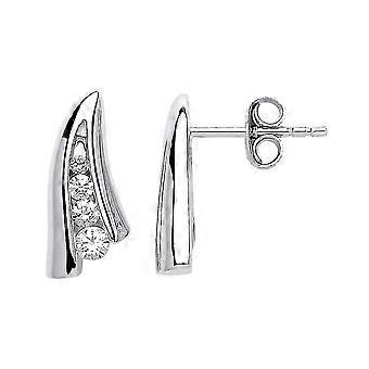 Jewelco London Ladies Sterling Silver Cubic Zirconia Shark Fin Stud Earrings