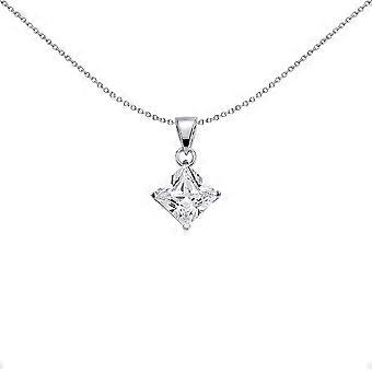 Jewelco London Ladies Sterling Silver Princess Cut Cubic Zirconia 4 Claw Solitaire Charm Necklace 18 inch